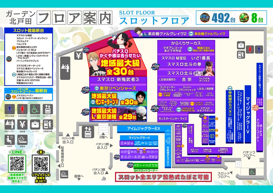 ガーデン北戸田はかなりスロットに力を入れてます。2と8とゾロ目の日にちはかなり強いです。特に8日はかなり強いです。5回ぐらいいってますが1000人以上並んでいて抽選勝てないので毎回打てません。夕方見に行くと安定にスロット出てます。座る台がありません。次回行くときは抽選勝てるようにがんばります