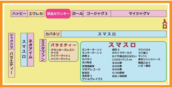 イベント日でなくてもメインのジャグラーには力を入れていて、毎日456と思われるデータを5台に1台くらい見かける。ふらっと寄っても大怪我をすることはないイメージがある。