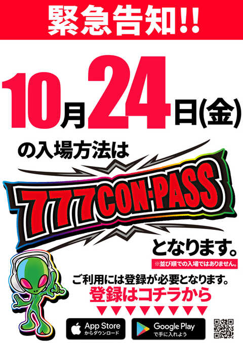 新台入替初日と特定日にはコンパス入場が実施されているようです。