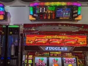 スロットはジャグラーに毎日数台高設定域を記録する台があるが、その他の機種の稼働が少ないし、交換率を考慮すると戦えない。