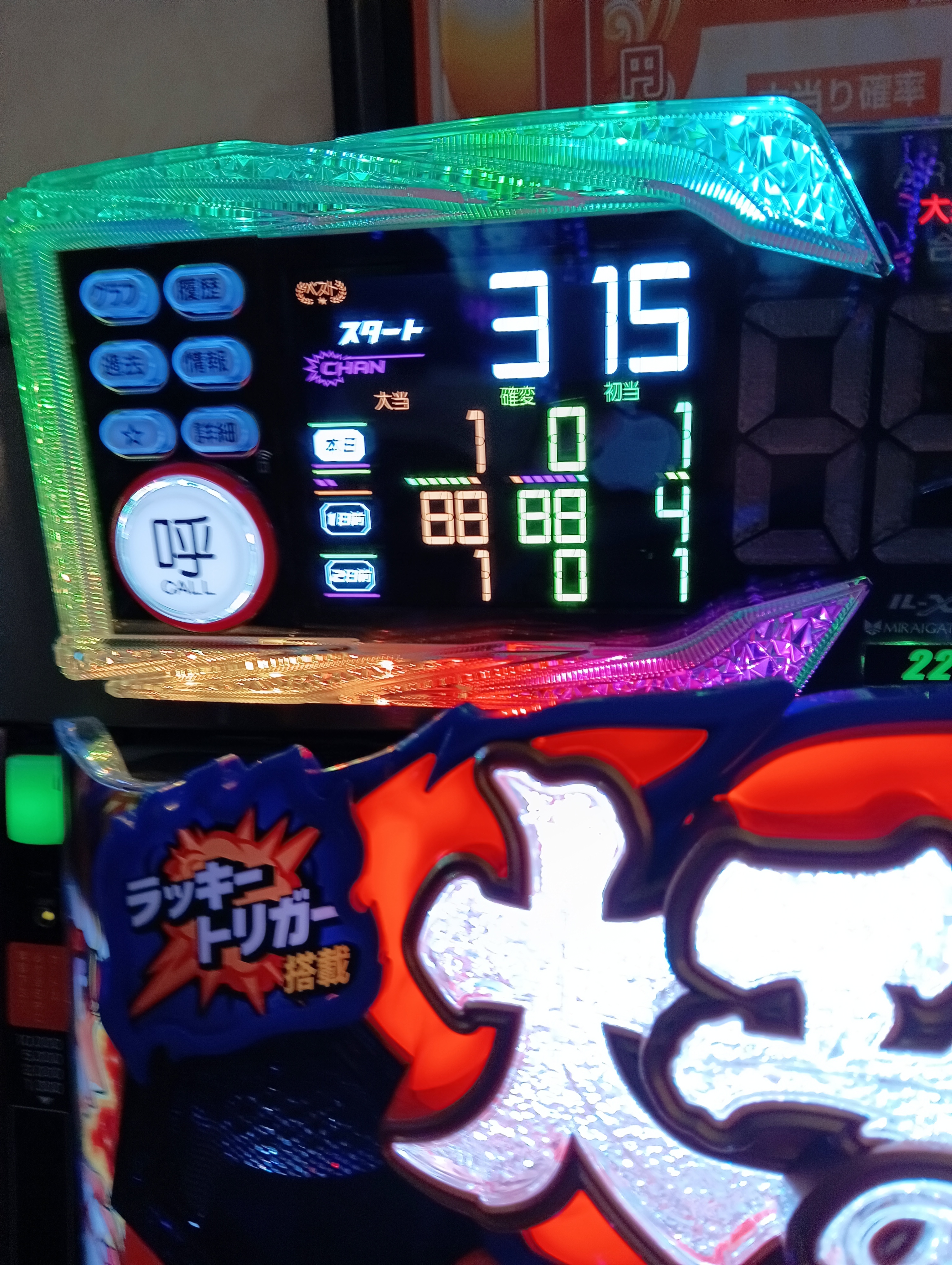 1年ほど前まで1の付く日はそれなりに抽選人数もおり座れないといった状況もあったのですが、最近では抽選が4〜5名、店内の稼働状況もかなり良くない印象です。