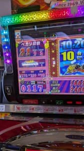 特定日でも全体に6が1台あるかないか程度なので、それなりに並び人数も多いので抽選に勝ってもピンポイントで座るのはかなり難しいです。オール設定とか並びとか末尾とか、そういった法則で複数高設定が入ることがまずありません。ここ最近はとくに設定状況がイマイチで勝負する気になれません。