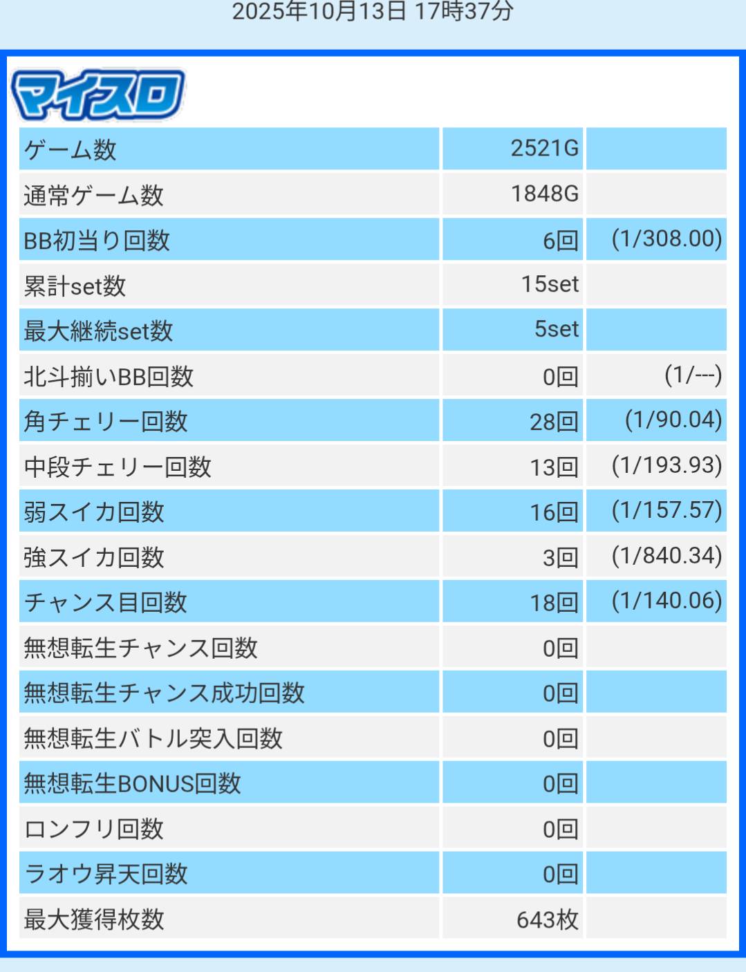 見かけるたびに連チャンして負けているところを見たことがないほど毎回のように当たっている