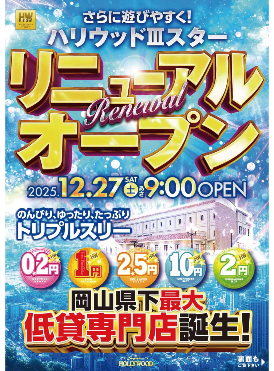 スーパーハリウッドと調整・設定にさほど差があるように思えませんが、なにせ