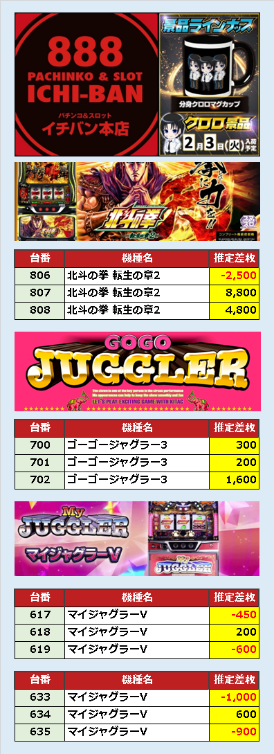 一応ですが、イチバン本店もビッグディッパーグラオ日の対抗でやってくると思います。(個人的にはイチバン本店がちょい穴、キング観光彦根が対抗本命って感じですが。)