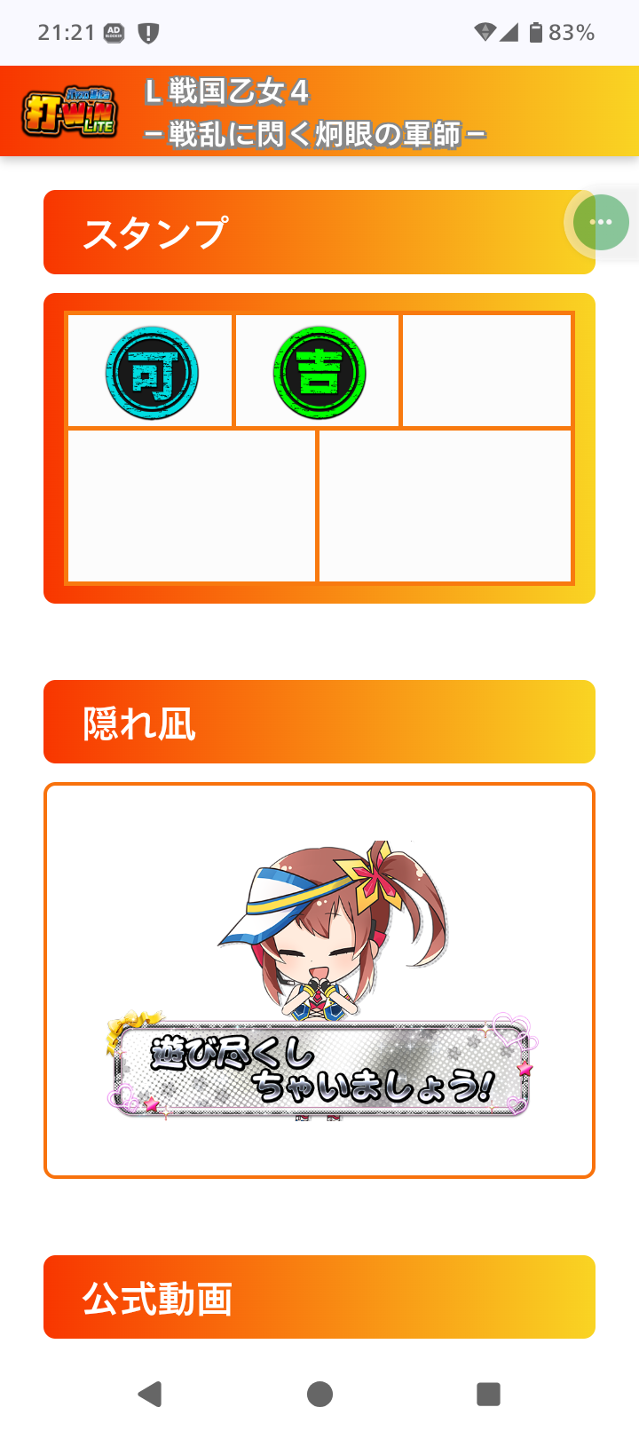 戦国乙女から3以上の終了画面ですが、隠れ凪で5以上が確定しました。