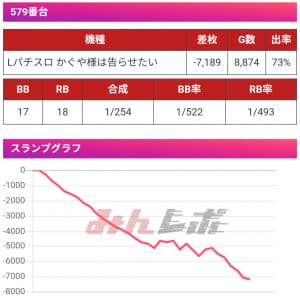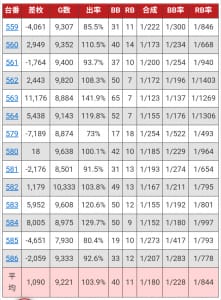 スロットのマイナス差枚でいかに抜いてるかがわかります。