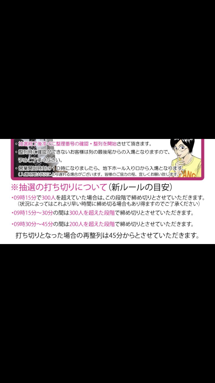 以前に揉めがあったからか、朝一並びに関して新ルールが制定されていました。