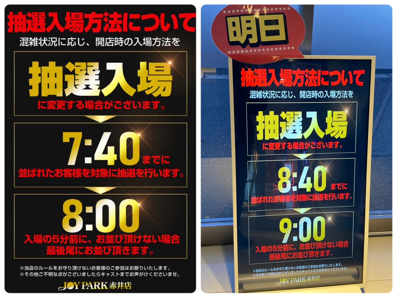 開店・抽選時間が変更となる場合があります