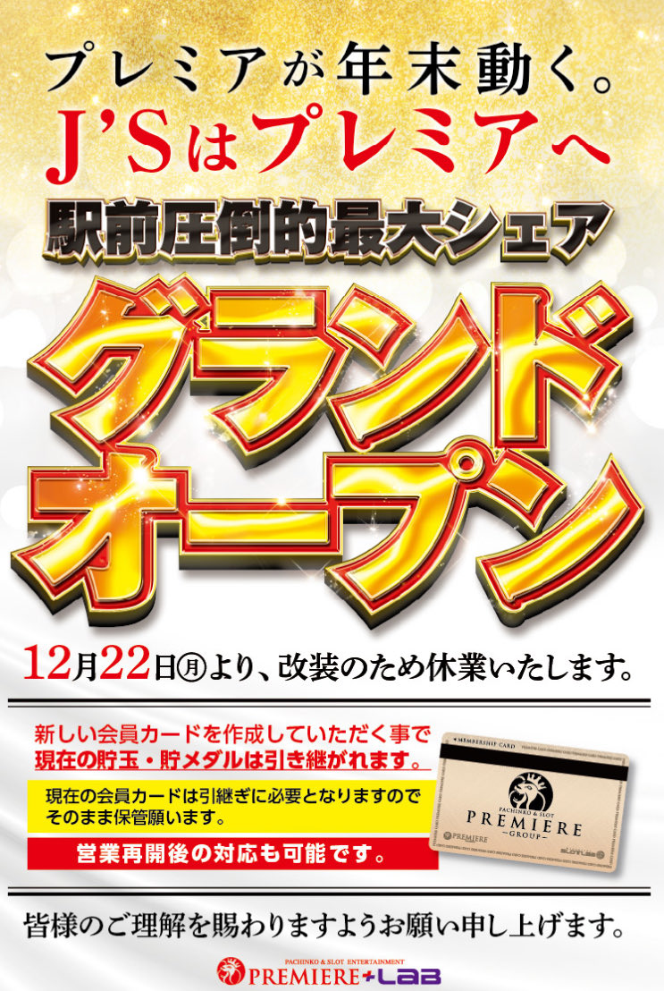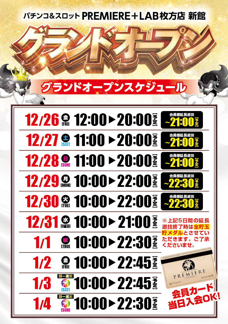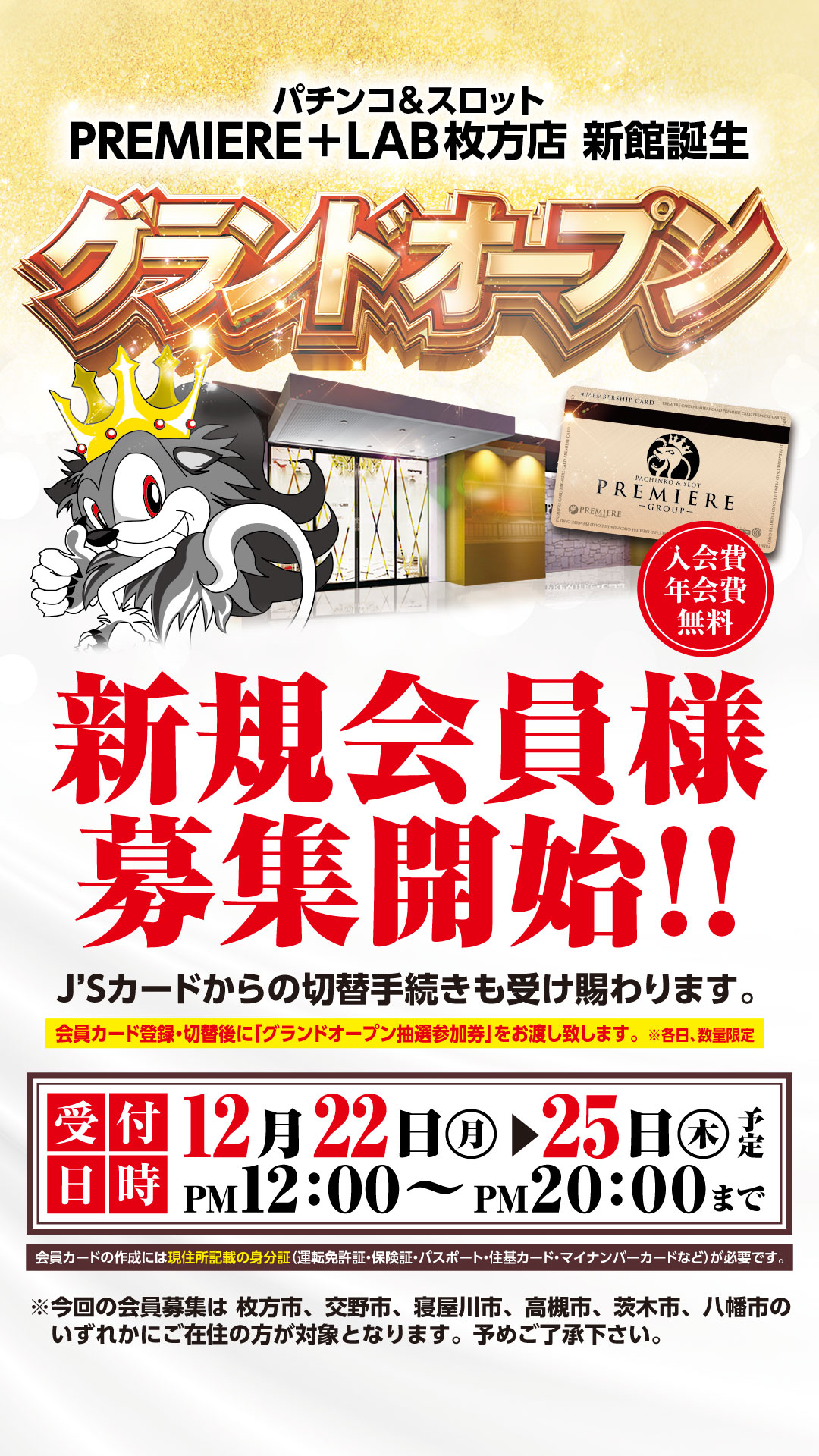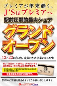 2. 12/22から改装のため休業、プレミア+ラボ枚方新館としてグランドオープン予定。