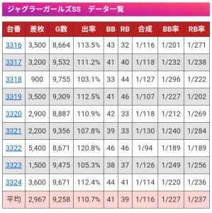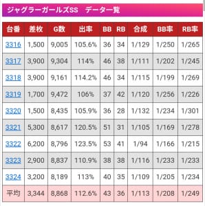 9月20日、30日のジャグラーガールズなんかは高設定だったと思われます。