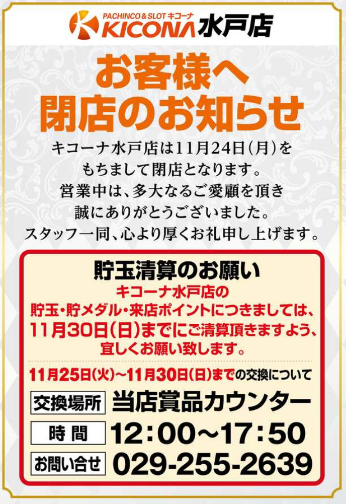 2025年11月24日(月)の営業をもって