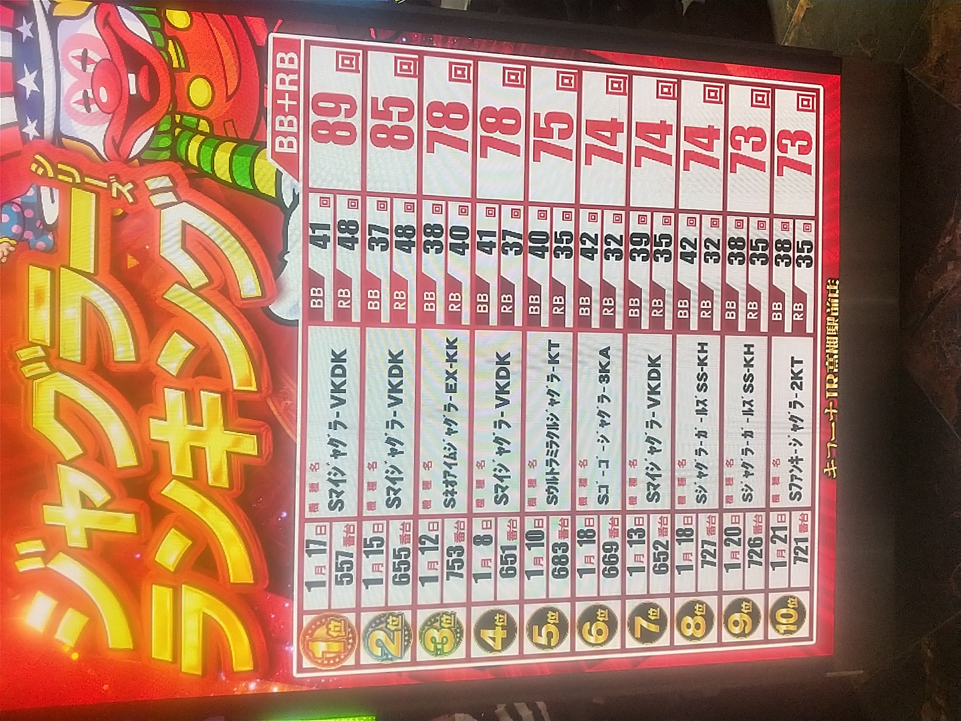 いくら平常日とはいえグランドオープンから2週間も経たないうちにかなり客が飛んでる。黙ってても稼働する機種以外はほんとにビビるぐらいガラガラでびっくりした。AT機は分からないけど、ジャグラーが2割ぐらいしか動いてないのは流石に設定をちゃんと使ってたらありえないでしょ。