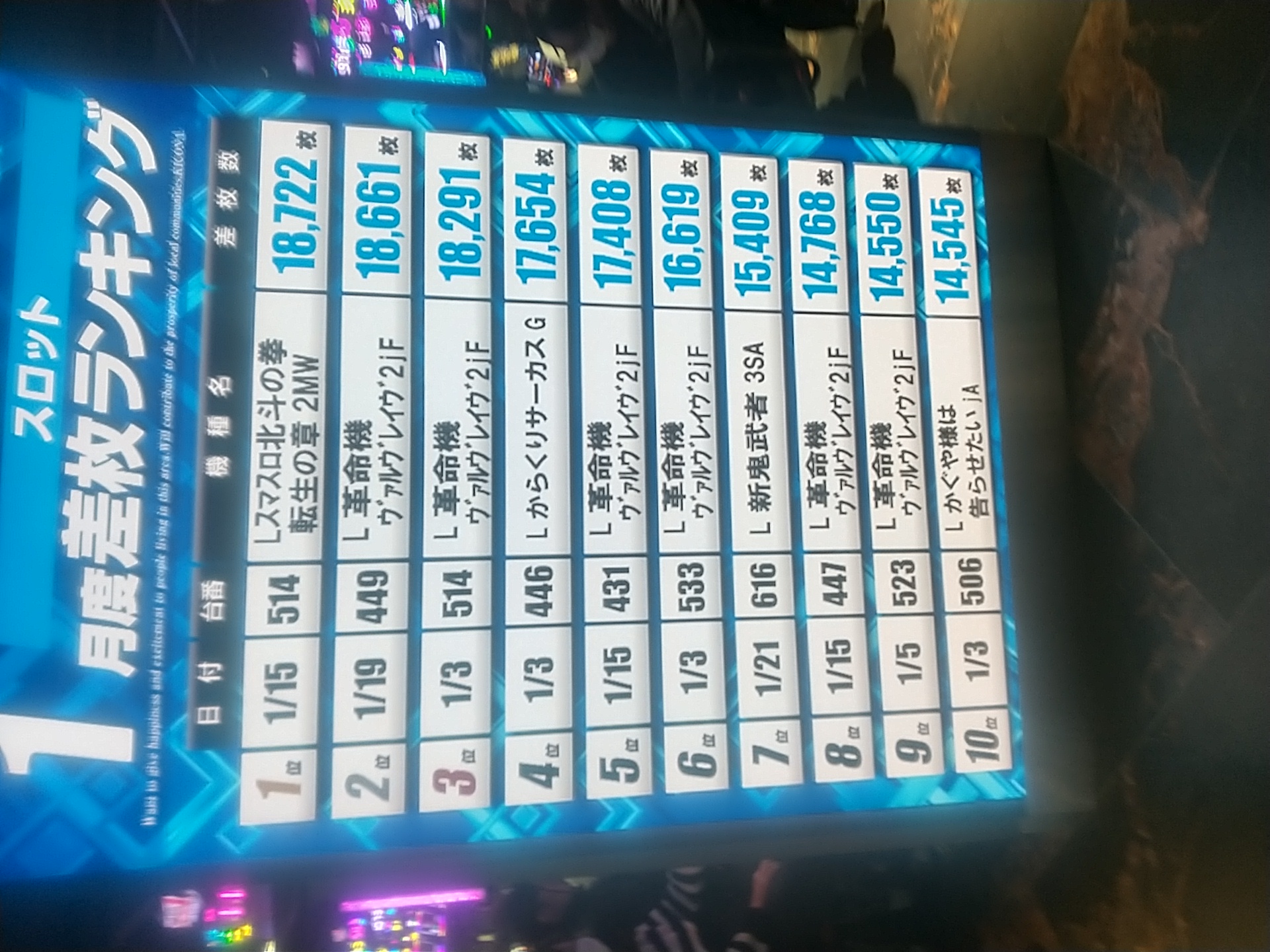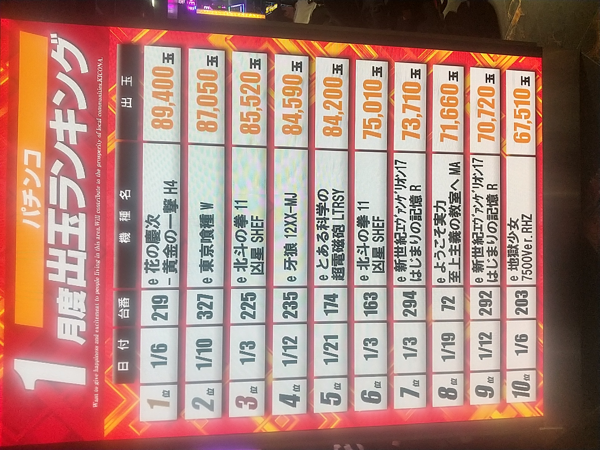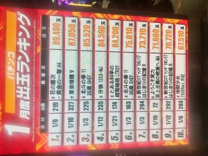 またデータカウンターからその日の出玉ランキングが出てましたが1位が銭形5で7000枚くらいだったかな。