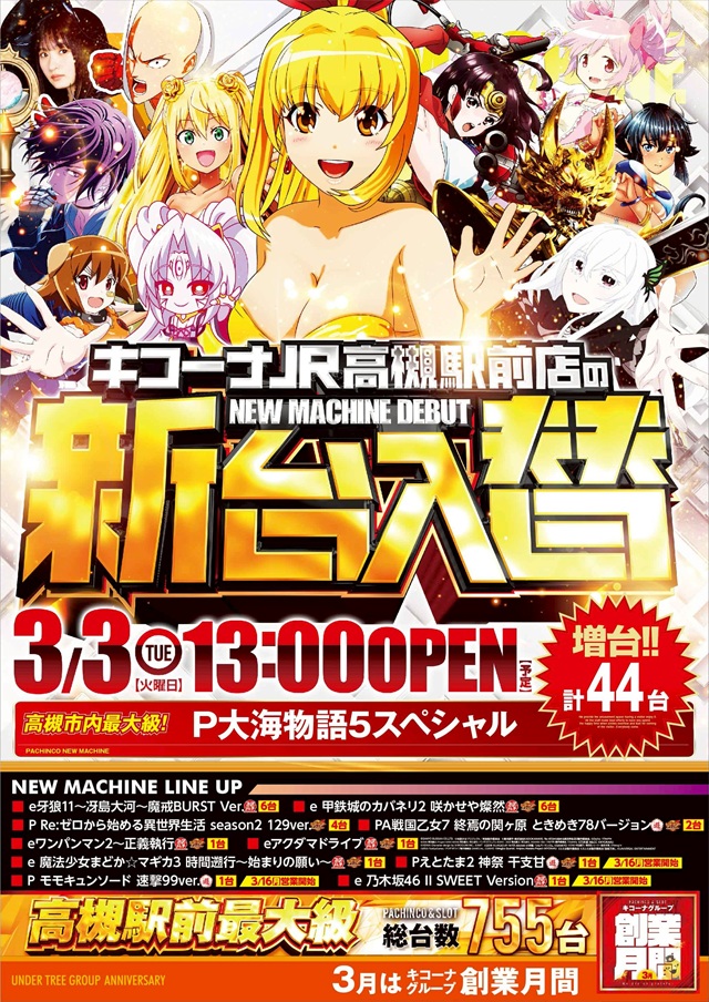 その他にも、化物語やかぐや様も当たりの機種1あったと思われます。