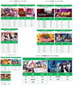 例)前回マギレコ1/2 東リベ1/5 鬼武者1/8 東京喰種1/12 少数島(12機種)1/6