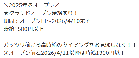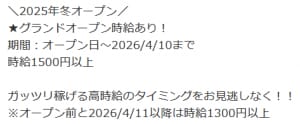 キコーナの求人が、グランドオープン時給を4/10までとなっているため、4月からはグランド期間終了と見て良さそう。