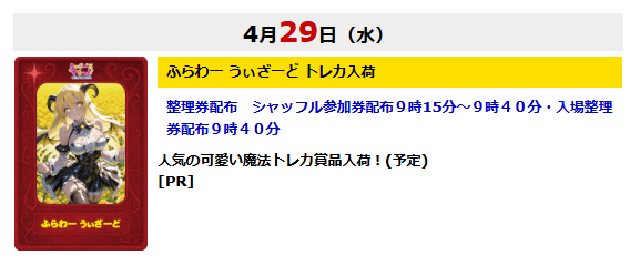 何もなしの平日にも関わらず全台系もやってる時があるみたいなので、毎日様子見がてら行く価値はありそうです。