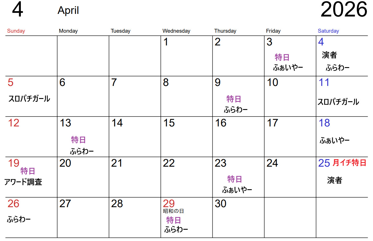 • オープン4日目+日曜日で