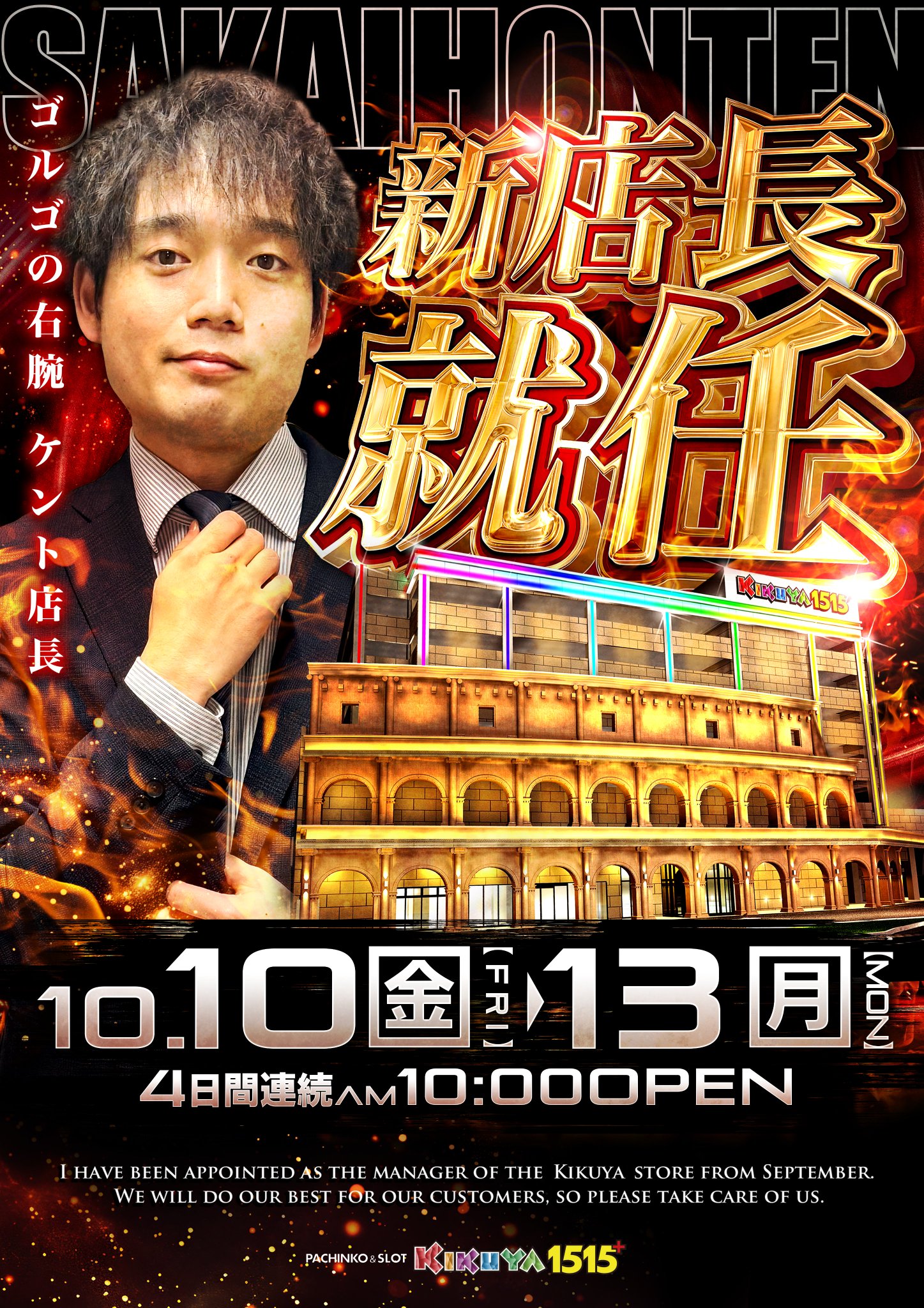 10/10から新店長が就任します。