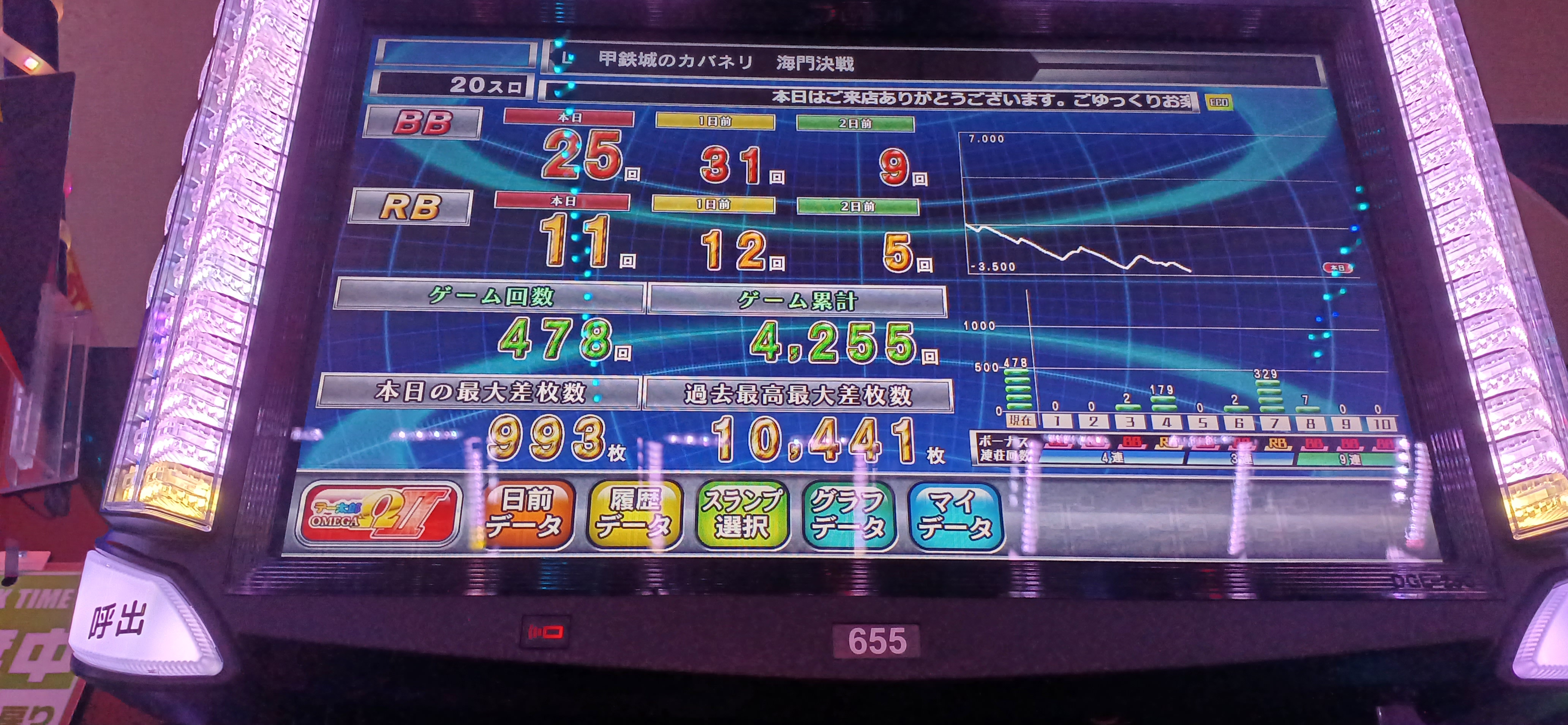 かぐやは200〜500Gの台がリセットされずに放置されていたことから、営業時間中にリセットされる台には店なりの法則がありそう
