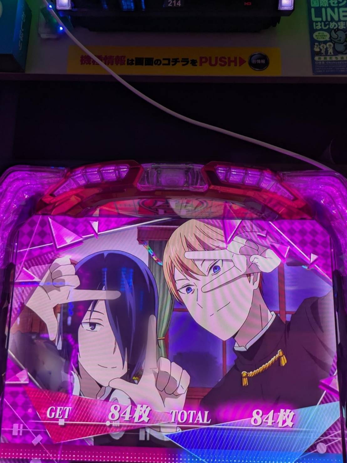 その次に良かったのがアイムで、3台並びと単品2台を合わせて半台系を作ってきました。台平均は+1137枚ということでこちらもハイレベルでした。