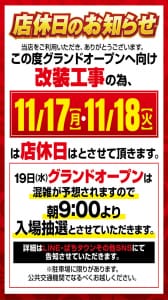 本日17日と18日を店休し、19日に丸三大阪東住吉店としてグランドオープンとのこと
