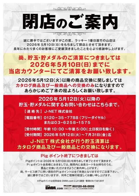 2026年5月10日 閉店