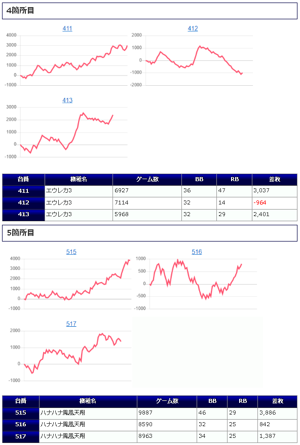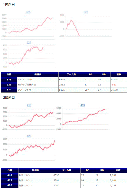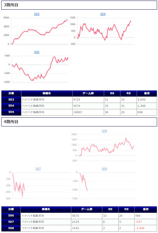 今回は5箇所15台の仕掛けで「物語セカンド」と「鳳凰~天翔」1箇所で全台がプラス差枚と信憑性の高い結果になりました。