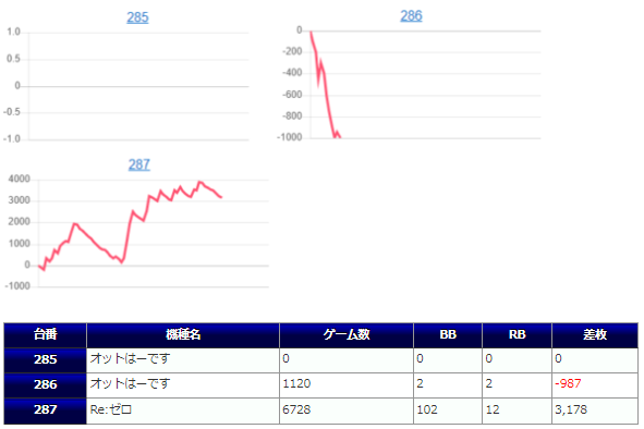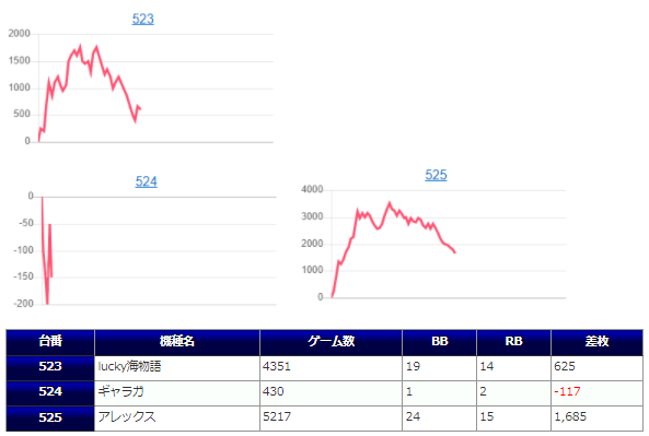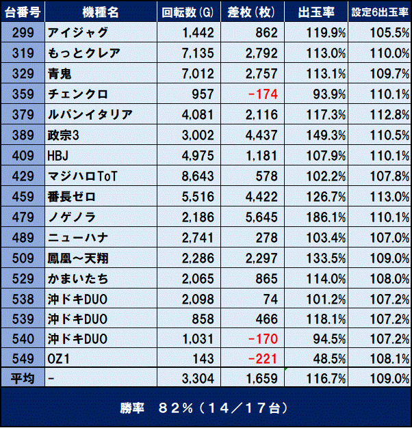 全体では、平均差枚+297枚(出率103.5%)という結果でした。