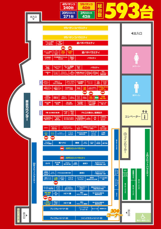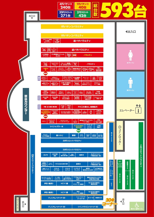 今回は、過去の傾向通り7箇所の仕掛けで「ハナハナ」+α「ノーマル」「AT・ART」「バラエティ」といった感じになるのか?