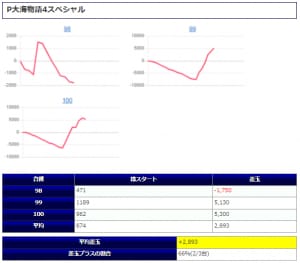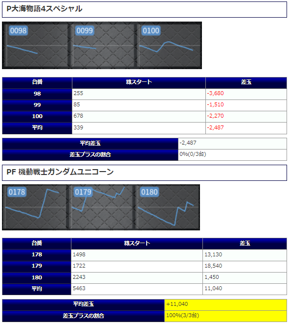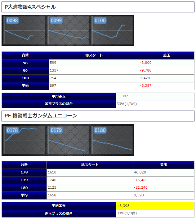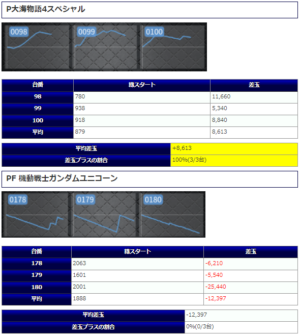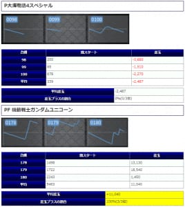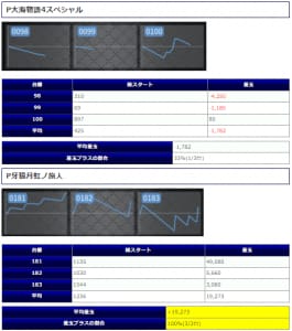 一方で「大海4SP」では、厳しい結果となりました…3台での稼働状況は平均で、僅か425回転と不完全燃焼に終わってしまいました。