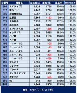 公約②の列は『ニューハナ・プレハナ』設置の列で7台の【設定⑥】が投入となっておりました。