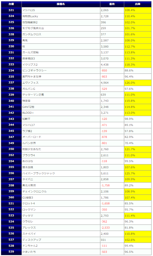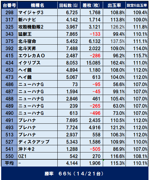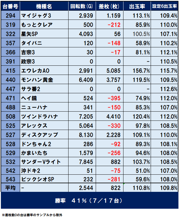 他にも1,000枚overが4台と随所で大量出玉が確認出来ました。