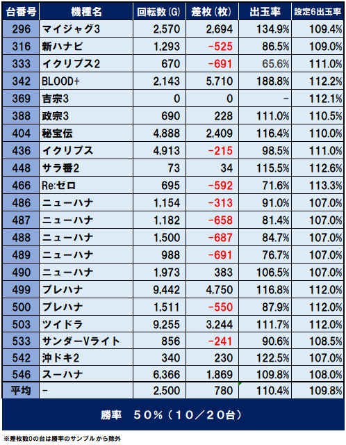 全体での結果は、差玉プラス39,060玉(平均+3,255玉)としっかりプラスで終えることが出来たので、良かったと思います。