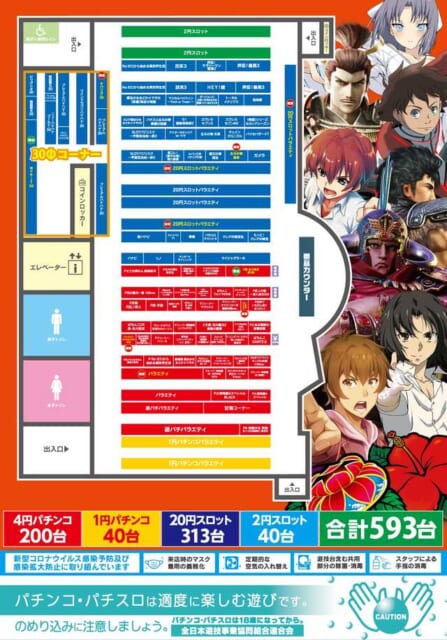 今回はスロットではしっかり甘い営業をされていましたが、パチンコでは不発となってしまいましたので、総合的に見て3点の評価とさせていただきます。