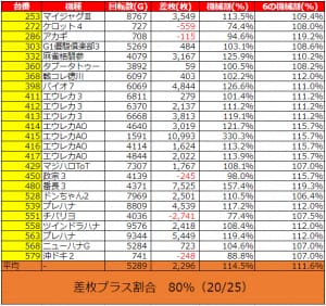 差枚プラスの割合80%(20/25台)