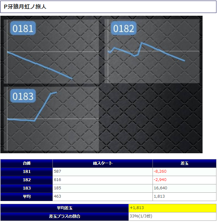 パチンコからは『牙狼月虹』『超韋駄天』で用意され、今回は残念ながら対象機種トータルでマイナス着地となってしまいました。