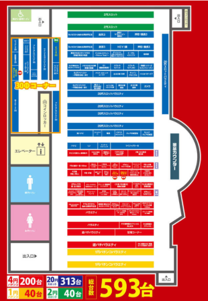 台数パチンコ280台/スロット313台