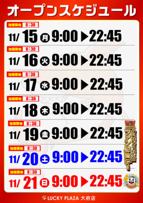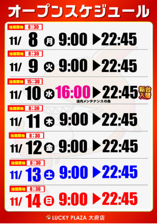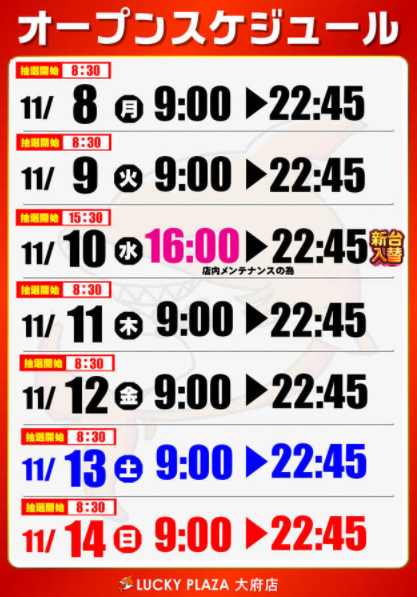 新台入れ替え直後の開催ですし、その辺りの機種の挙動も確認しておきたいですね。