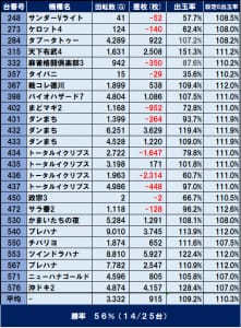 機種単位では1勝1敗、対象機種トータルで僅かにマイナスとなり、今回は残念ながら不発になってしまったようですね。