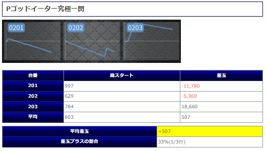 マイナスとなった台もほとんど稼働しなかった台でしたので、この辺りも実際の仕掛けが信頼できる理由になるでしょう。
