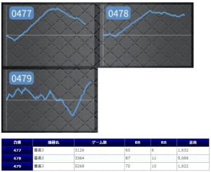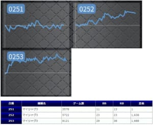 それ以外でも、「マイジャグⅢ」は計6台でREG先行していますし、「ロックマン」「タイバニ」などのノーマルタイプ・6号機の粘られていた台にしっかり結果がついてきた点は嬉しいですね。
