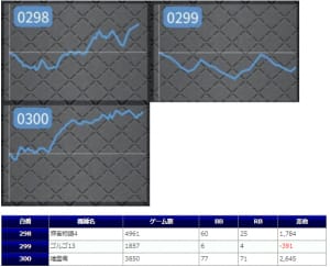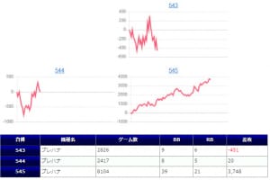 並び系全体で、平均+556枚、出率113.2%、勝率87%(13/15台)と、出率&勝率面はかなり優秀ですが、今回は特に低稼働な部分が目立ったように思います。