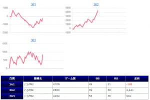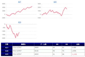 特に「トータルイクリプス」の3台並びが凄まじく、+11,390枚、+9,922枚を筆頭に全台プラスと、逆に出すぎたことで状況が見えてきにくかった部分はありますが、他の仕掛けを見るにかなり信用できる結果だったと思います。