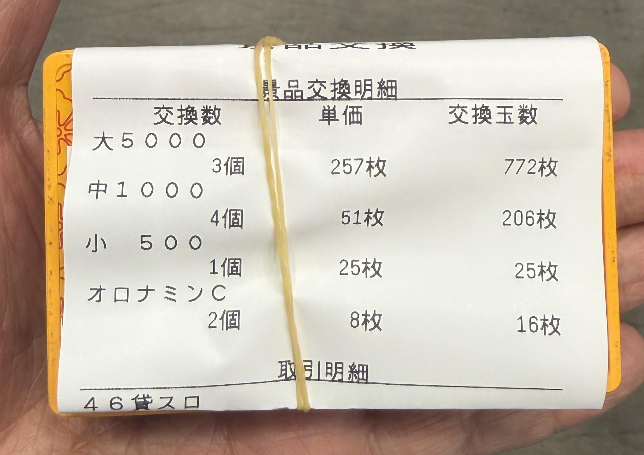 あと、スロの交換率は5.4枚ではなく5.152枚でした。