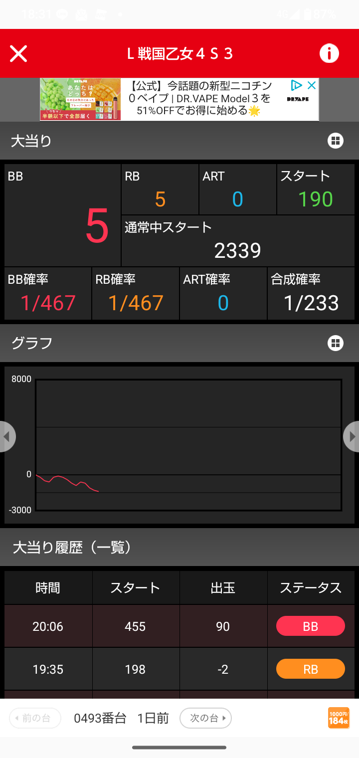 | 台あたりの平均差玉 | +66玉 |