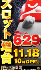 11/18からパチスロ629台に増台です。