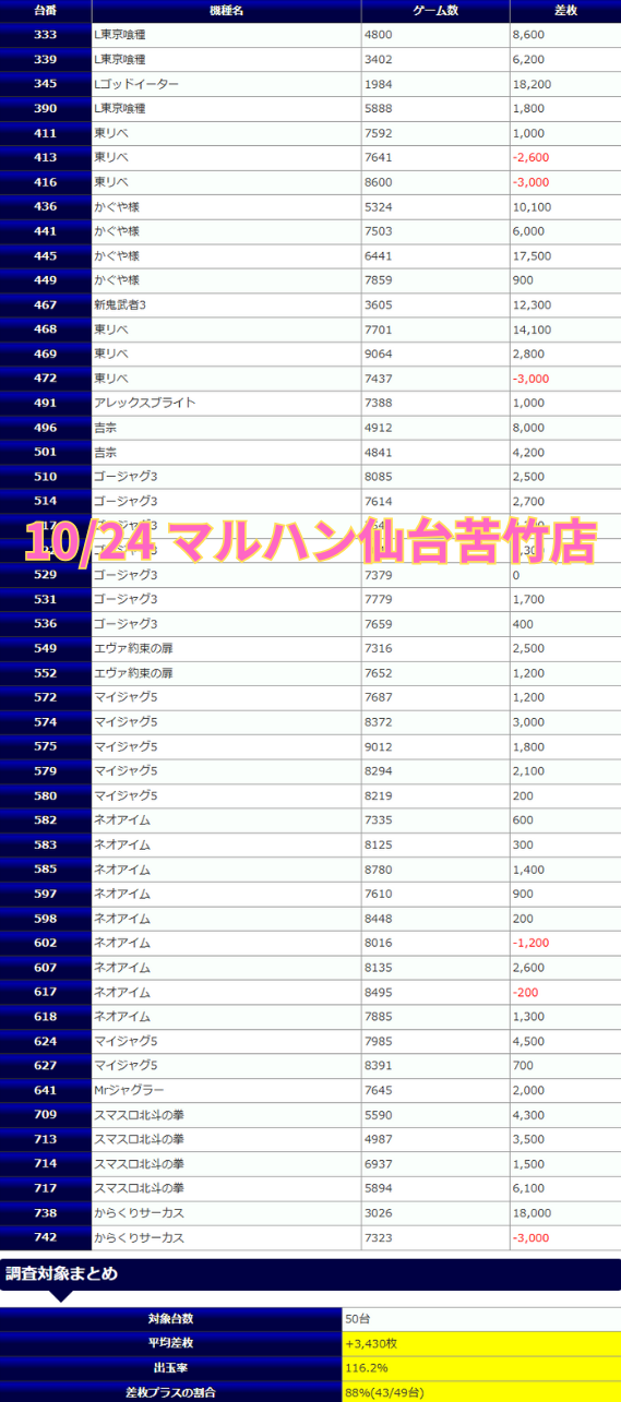 マルハン仙台苦竹店の予想です。