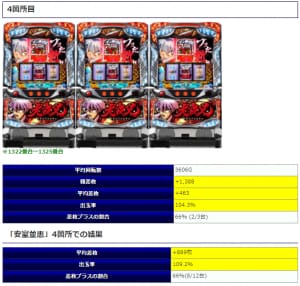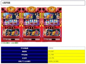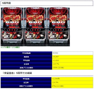②箇所目では平均2,330回転の打ちこみで平均差枚+1,591枚、③箇所目においても3,877回転で平均差枚+1,753枚と両箇所で安定感のある内容を披露。もう少し打ち込まれていたら①箇所目のようなミラクルな結果になっていた可能性もありそうですね。